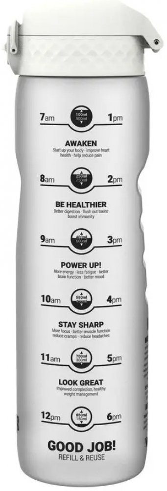 Vysoce kvalitní, jedním dotykem otevíratelná, 100% těsnící univerzální láhev na nápoje ion8 z odolného, zdravotně nezávadného materiálu Reyclon je lehká a snadno omyvatelná. Lahev ion8 nejen dobře vypadá, ale především se velmi dobře používá.