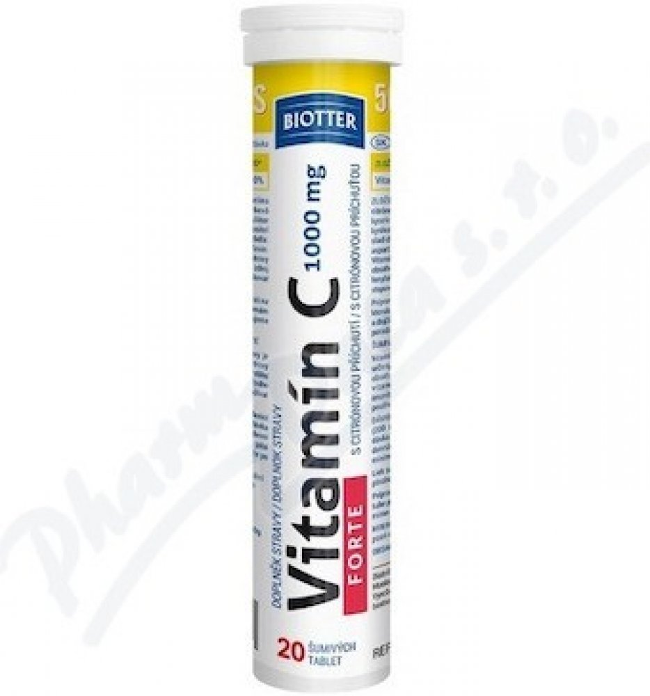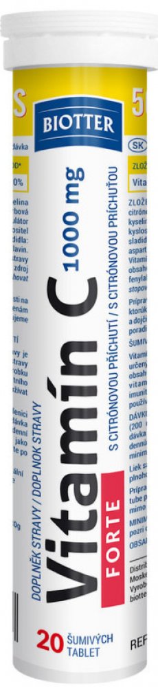 Biotter Pharma 20 tbl šumivé tablety imunita 80 g Biotter pro dospělé perorální Citron vitamín C imunita a obecné zdraví 20 1000.0 mg Kdykoliv 1 za den Nespecifikováno