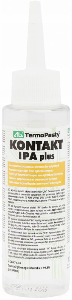 IPA Plus je isopropylalkoholový čistič a dezinfekce s obsahem 99,9% alkoholu, je vhodný pro dezinfekci většiny povrchů, především plastu, kovu, skla, dřeva a dalších materiálů. Je vhodný také jako univerzální čistič a odmašťovač, nezanechává skvrny a velmi rychle se odpařuje. Prostředek IPA Plus je vhodný jako univerzální dezinfekce madel, klik, ale například i mobilních telefonů, dotykových obraz...