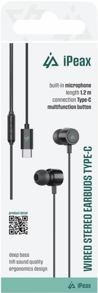 iPEAX DRÁTOVÁ SLUCHÁTKA USB-C ČERNÁ