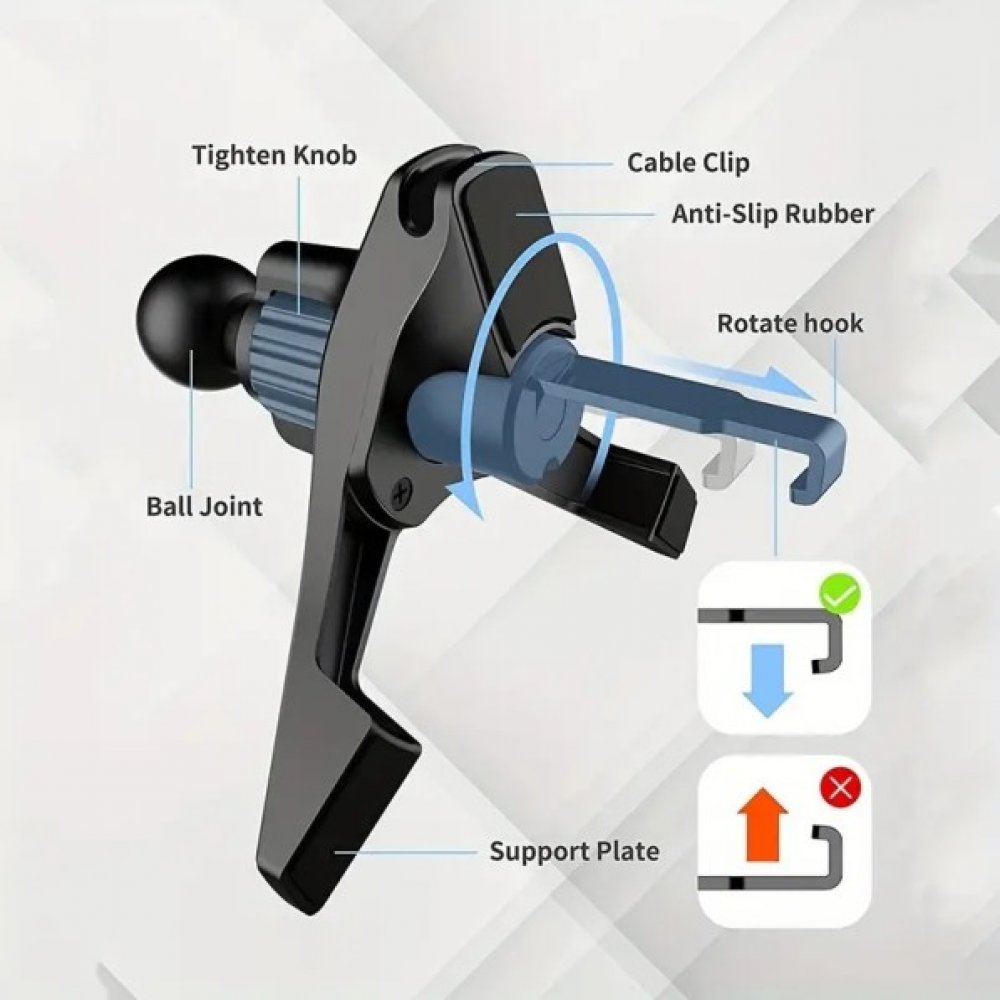 - Stabilní uchycení do ventilační mřížky vozidla