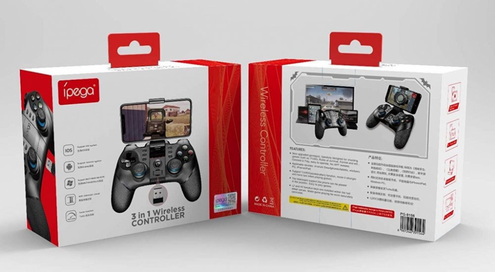 iPega 9156 je herní bezdrátový ovladač, který lze připojit k mobilům s iOS a Android. Tento produkt používá bluetooth 4.0 a podporuje přímé připojení a přehrávání na zařízení iOS a Android. Konstrukce gamepadu disponuje teleskopickým držákem pro 4-6 palcové mobilní telefony.