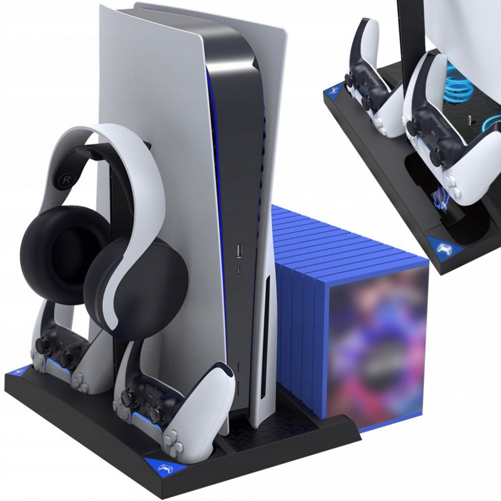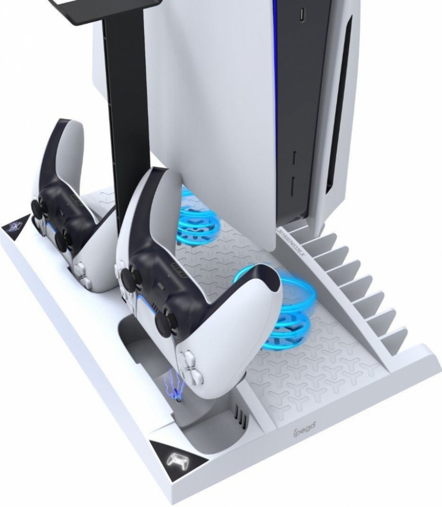 Udržujte svou herní stanici v čistotě a pořádku. Pomůže vám s tím multifunkční stojan iPega PG-P5013B pro konzoli PS5, který je vybaven dvěma chladicími ventilátory, dvěma stanicemi pro nabíjení podložky, stojanem pro sluchátka a úložným prostorem pro hry. Je vybaven portem USB2.0, takže umožňuje nabíjet sluchátka a další příslušenství, zatímco přiložený montážní šroub zajišťuje stabilitu stojanu.