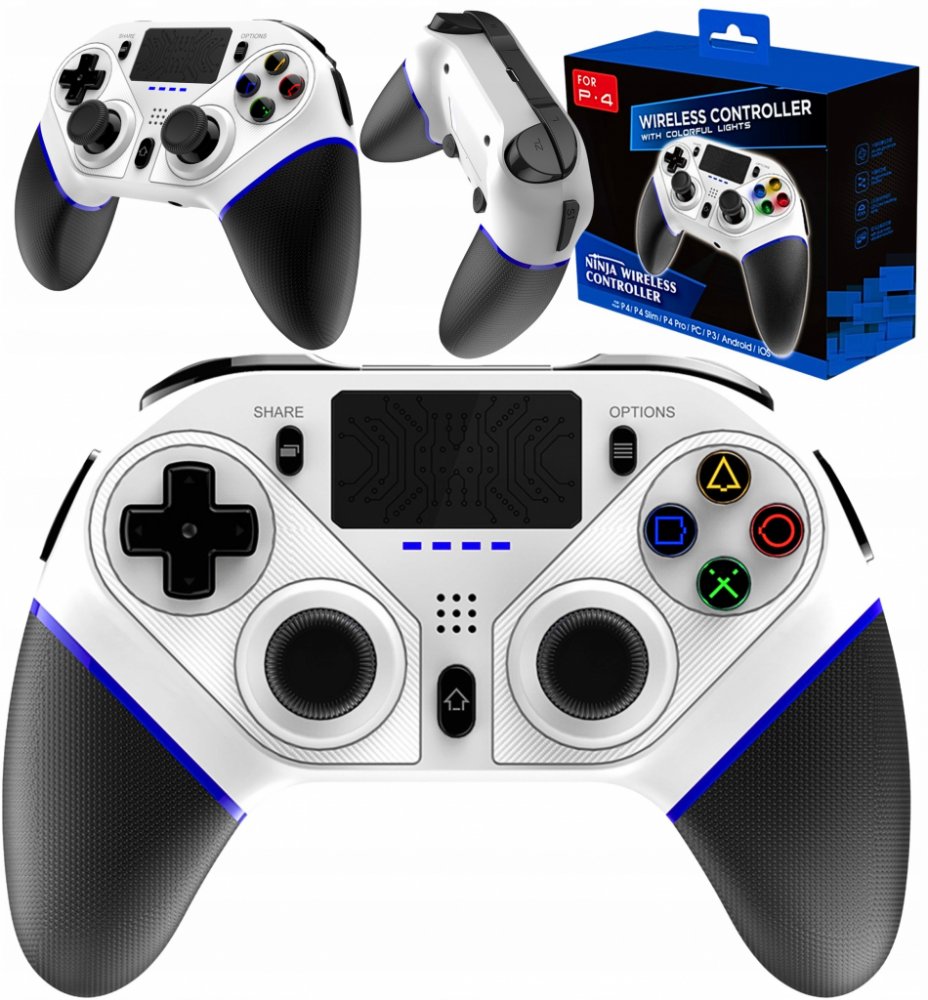 ManufactureriPegaModelPG-P4010BColorWhiteConnectionWired / BluetoothBluetooth version3.0Bluetooth range8mBattery capacity400 mAOperating current< 50mAOperating voltageDC 3.7VInput voltage-Input current-Operating time on a single chargeApprox. 6hCharging timeApprox. 3hOperating time in standby mode30 daysCharging portUSB-CNumber of programmable buttons4TouchpadYesVibrationYesBuilt-in speakerYes3.5mm jack audio inputYesCompatibilityPS4, PS5 (PS4 games only), Android (10.0 and above), iOS (13.0 and above, Android TV (wired), PS3 (wired), PC (wired)