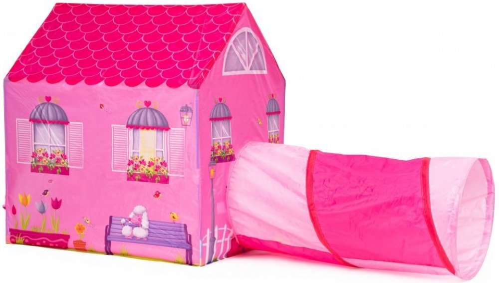 Stan je vyzdoben v růžových barvách, ideální pro dívčí pokoj. Materiál, ze kterého je stan vyroben, je silný vodotěsný polyester, který lze použít venku na zahradě. Rám stanu je velmi lehký, lze snadno složit a celou stavbu lze snadno přesunout. Stan má dva vchody se závěsy.