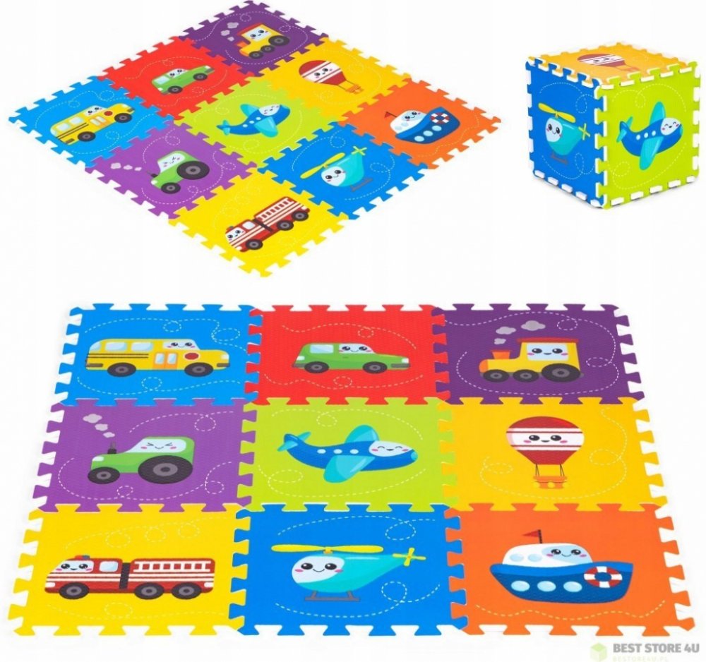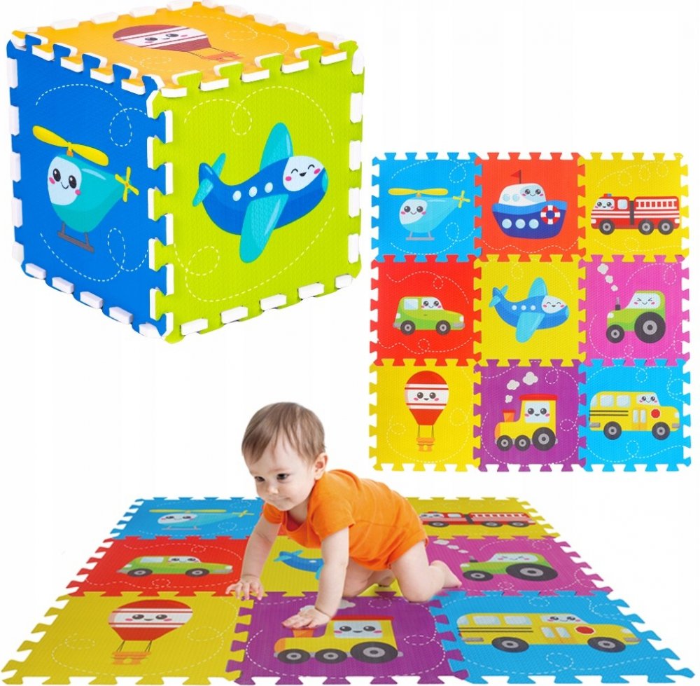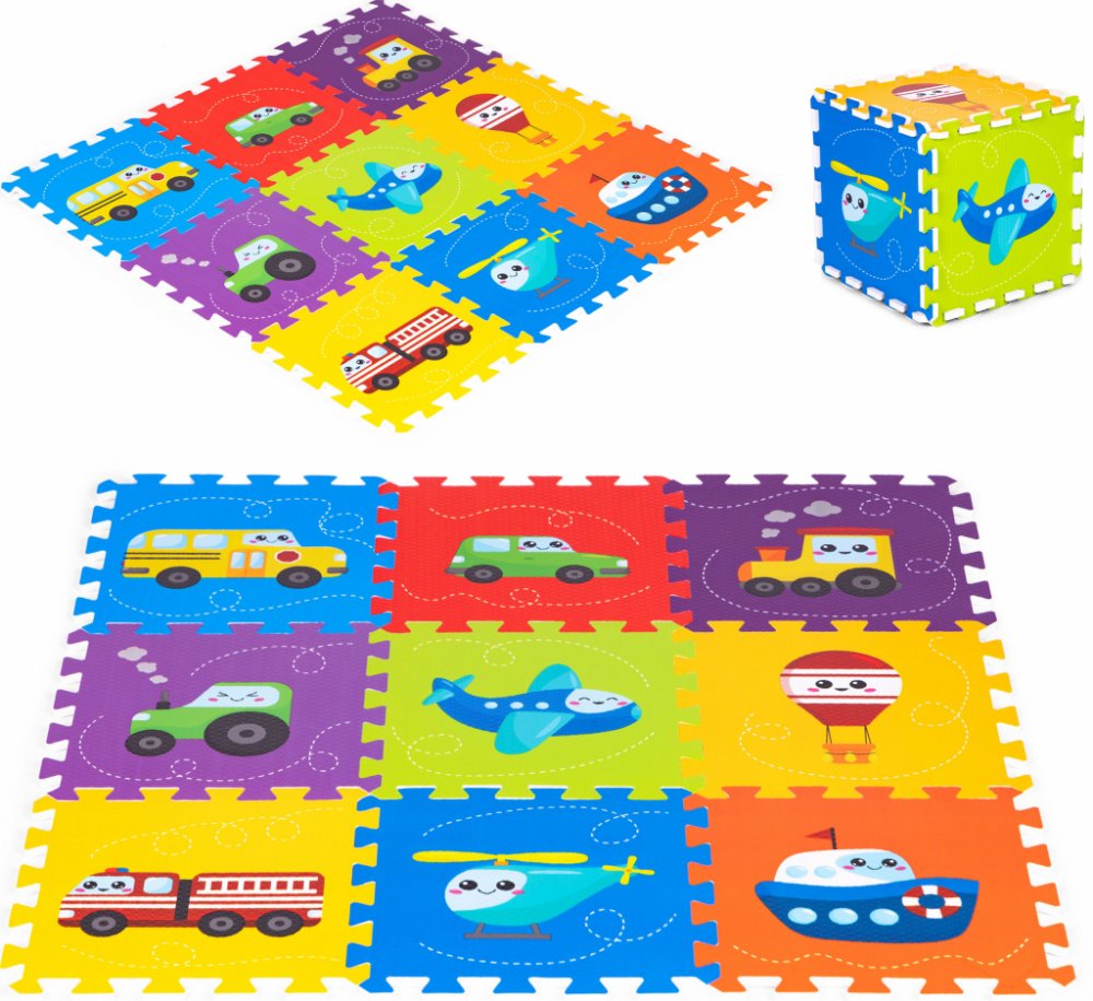 Iplay Pěnová podložka pro děti puzzle vozidla 9 prvků 86x86cm