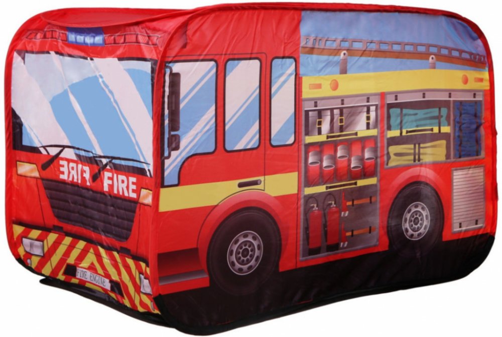 Tvar výrobku připomíná hasičský vůz - má východ ve střeše, aby dítě mohlo simulovat hašení. Stan je praktický a snadno se montuje. Díky lehkému rámu je snadné jej přenášet z místa na místo.