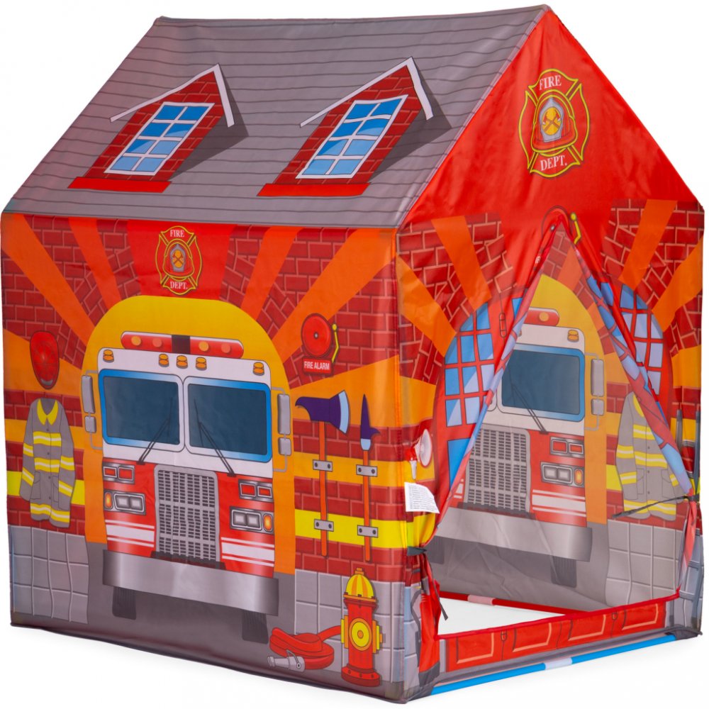 Stan v podobě hasičské zbrojnice skvěle zapadne do oblíbených dětských her. Stan může být postaven nejen doma, ale také na zahradě. Předností tohoto stanu je samo-rozkládací rám, díky kterému je montáž velice rychlá a snadná.