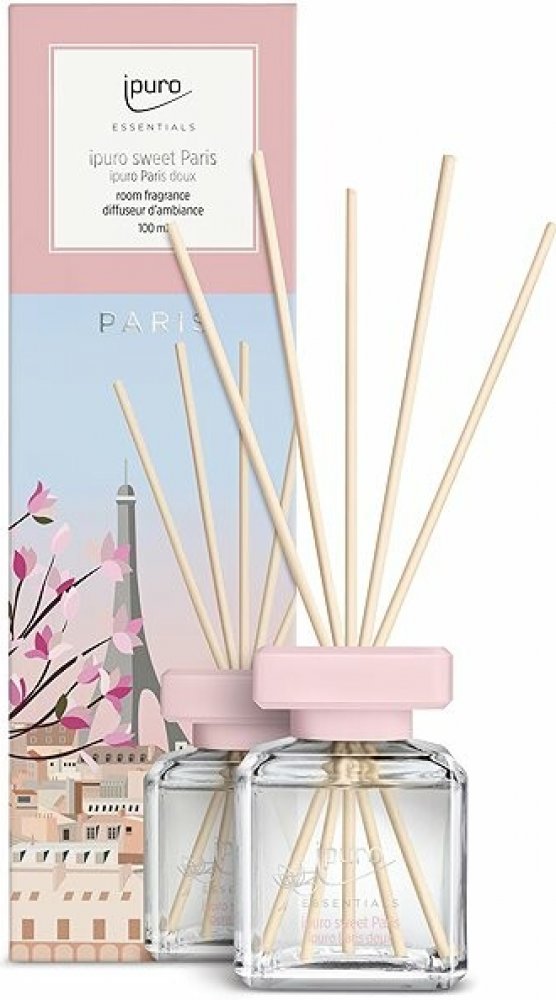 ipuro Essentials Sweet Paris, 100 ml, Aroma difuzéry s náplní Vůně do bytu, Aroma difuzér ipuro Essentials Sweet Paris představuje příjemný způsob provonění vašeho interiéru. Vlastnosti: sladké aroma květinová vůně jarní vůně Jak používat: Intenzitu vůně ve vašem interiéru také můžete zvýšit občasným otáčením namočených tyčinek. Uchovávejte mimo dosah dětí. Pokud se náplň difuzéru střetne s kůží, okamžitě ji omyjte velkým množstvím vody a mýdla. Při zasáhnutí očí několik minut vyplachujte vodou.