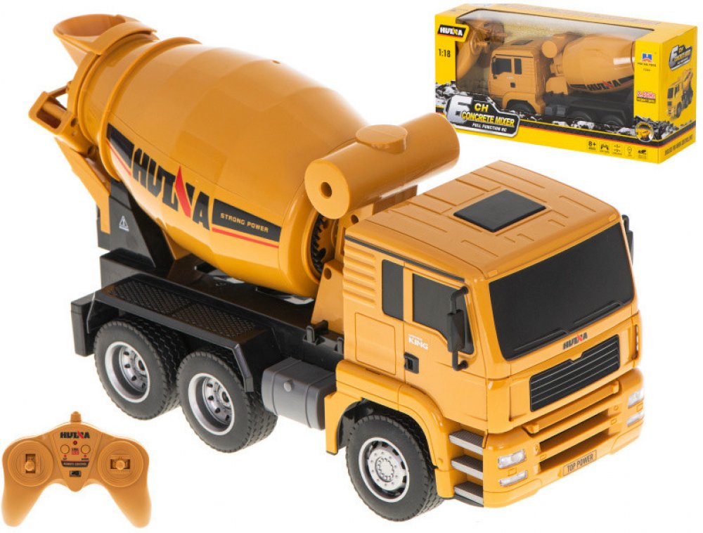 Concrete mixer 1:18 2.4GHz RTR je plně funkční hračka na dálkové ovládání. Vozidlo může otáčet buben ve směru nebo proti směru hodinových ručiček. Simulované zvuky a světla vám mohou poskytnout skutečný provoz. Toto auto je perfektním dárkem pro děti a kohokoliv, kdo se chce stát řidičem stavby.