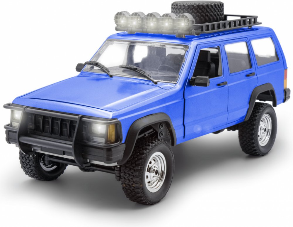 JEEP CHEROKEE 1/12 4x4Novým přírůstkem do rodiny RC modelů je nádherný model JEEP CHEROKEE. Jedná se o vůz, který nedosahuje příliš vysoké rychlosti, za to ale obří síly, kterou oceníte při jízdě v terénu. Model je vyroben z velice odolného ABS plastu, podvozek je navíc vyztužen slitinovým rámem a nárazy bez problému absorbují tlumiče.Jízdní vlastnostiS pohonem všech čtyř kol disponuje obrovskou silou, která mu umožňuje jízdu i v obzvlášť náročném terénu. Fanoušci určitě ocení i možnost otevírání dveří jak předních u řidiče a spolujezdce, tak pátých dveří, kde je prostor pro naložení věcí. Designéři si dali záležet i na interiéru a vše je zpracováno do posledního detailu. Na střeše auta je zahrádka s náhradním kolem a osvětlenou rampou. LED osvětlení je v plném vybavení, fungují všechna světla i blinkry. Velikou výhodou je odolnost proti stříkající vodě, nedělá mu tak problém ani rosa, kaluže nebo sníh. Na dálkovém ovládání jde omezit rychlost, přepínat můžete mezi rychlostí cca 3 a 6 km/h.Doba jízdyPod kapotou je ukrytá přihrádka na akumulátor Li-on 7,4 V 1200 mAh, díky kterému je doba jízdy cca 52 minut. Lze si ji ještě prodloužit dalším akumulátorem. Pro zprovoznění budete potřebovat 2 x AA baterie do vysílače. Nabijete ho přibližně za 180 minut přiloženou USB nabíječkou.Ovládání je velice jednoduché, pomocí pistolového ovladače řízení tohoto RC auta zvládnou i ti nejmenší. Dálkové ovládání funguje na frekvenci 2,4 GHz, díky tomu se vám nebude rušit ani víc modelů na jednom místě.Dostupný také v šedé a červené barvě. Obsah balení: JEEP CHEROKEE 1/12 4x4 modrý Pistolový ovladač 2,4 GHz Akumulátor Li-Ion 7,4 V / 1200 mAh Nabíjecí USB kabel