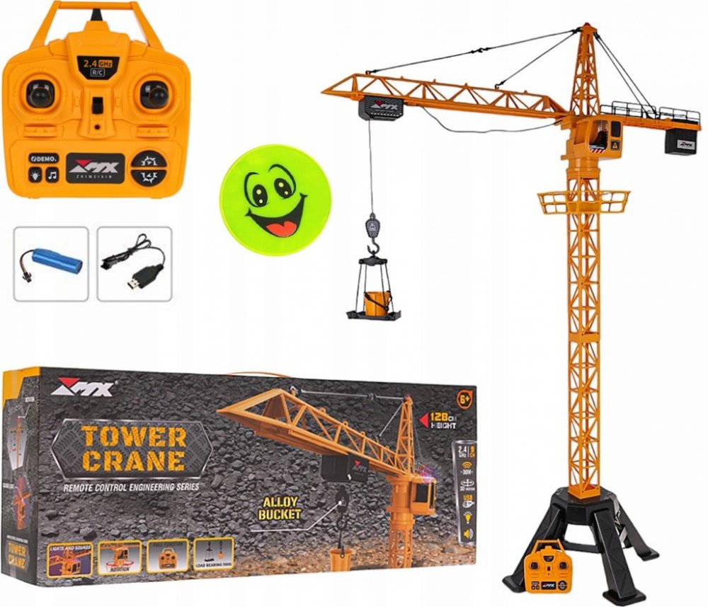 Model je vyroben v měřítku 1:14 a má rozměry: 1230 x 930 mm a váží cca 3 kg. Jeřáb je vyroben z kovu a ABS plastu. Lze ovládat do všech směrů a pohybovat s ramenem stroje. Vysílač pracuje na frekvenci 2,4 GHz a dosahuje do vzdálenosti 30 metrů. Akumulátor modelu 7.2V baterie NiMH 400mah vydrží na jedno nabití cca 30 minut. Doba ...