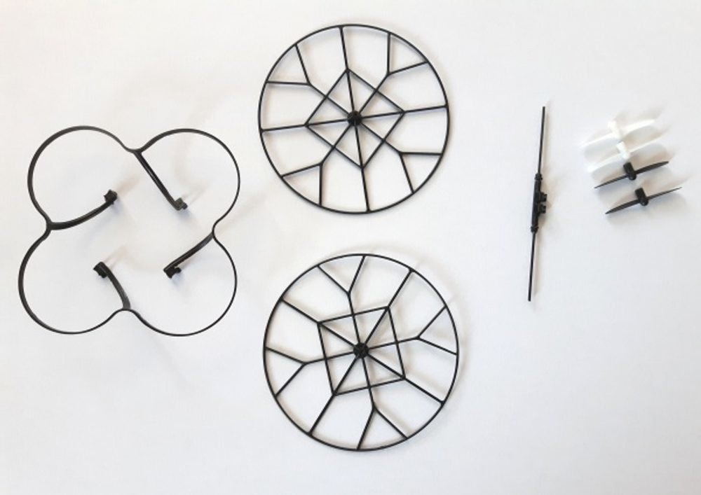 Sada vrtulí, ochranný rám, pomocná kolečka.