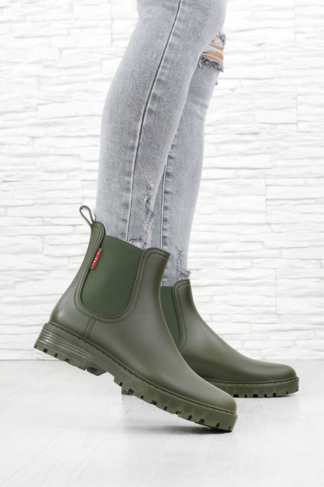 Holínky v matné zelené barvě jsou spojením pohodlí a stylu, který oceníte v deštivém počasí. Díky jejich voděodolné povrchové úpravě můžete procházet městem s jistotou, že vaše nohy zůstanou suché a stylové.