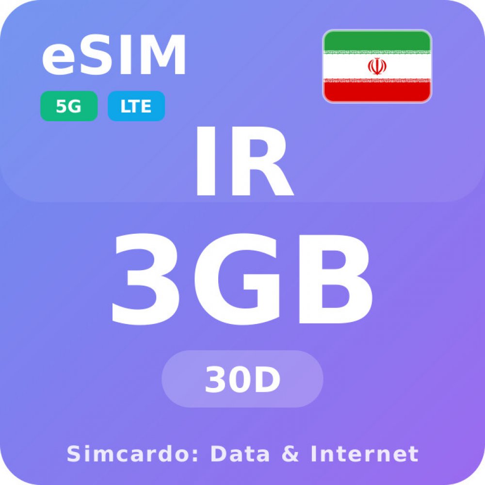 Mobilní datový plán pro Írán s 3GB platný na 30 dní.