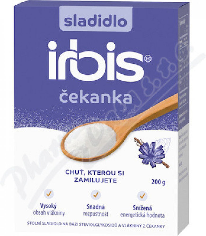 Irbis Čekanka je sypké sladidlo přírodního původu získané z listů rostliny stévie doplněné rozpustnou vlákninou z kořene čekanky. Vhodné pro obohacení jídelníčku vlákninou v rámci zdravého životního stylu.