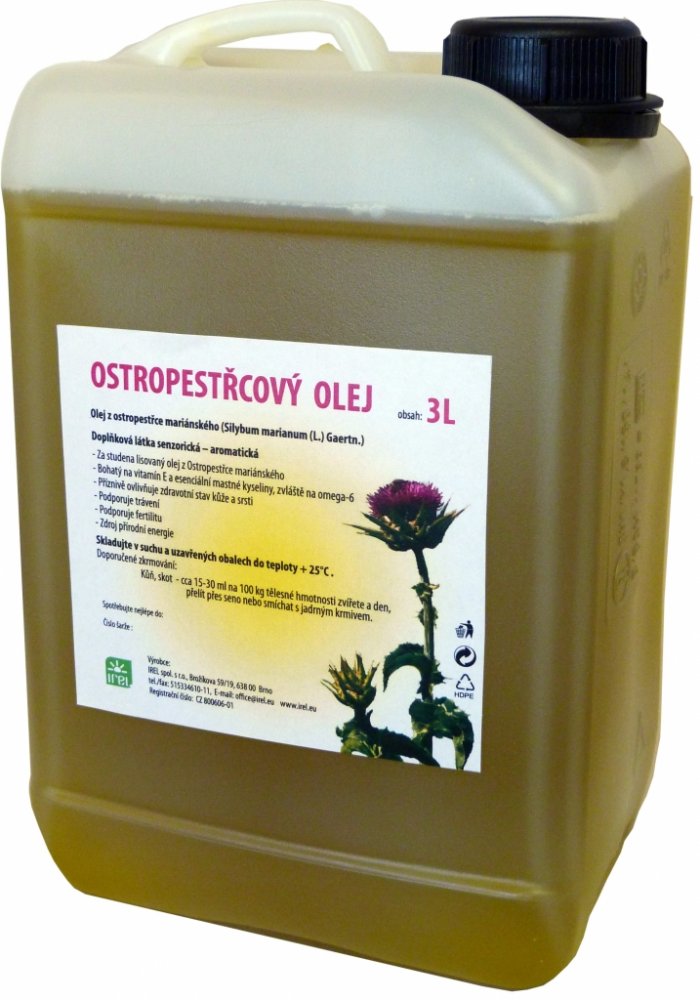 - Jedná se o panenský olej z plodu ostropestřce mariánského (Silybum marianum (L.) Gaertn.) lisovaného za studena. Tento produkt se používá jako senzorická (zchutňující) doplňková látka při krmení zvířat.