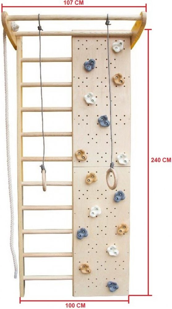 - Šířka: 100 cm (žebřiny 50 cm + lezecká stěna 50 cm)