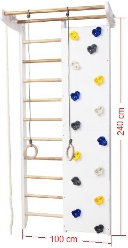 - Šířka: 100 cm (žebřiny 50 cm + lezecká stěna 50 cm)