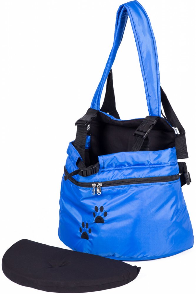 Batoh je dále vybaven praktickou kovovou karabinou na pružné gumě pro zajištění bezpečí psa, ve dně je vložena 2 cm PUR pěna + 2 cm vkládací dno na zpevnění a pohodlí pejska. Zipové kapsy na přední i zadní straně pro uložení věcí.