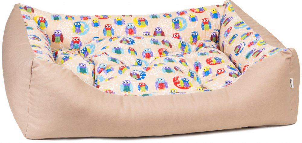Díky odolné batohovině v béžové barvě a příjemné bavlněné látce se vzorem soviček na béžovém podkladě a zateplenému dnu z dutého vlákna se váš chlupatý kamarád bude cítit jako v bavlnce. Výplň pelechu je drcená PUR pěna, kterou ručně plníme do podšívky. Díky tomu je zaručeno, že váha vašeho miláčka pelech nezmáčkne a neleží na tvrdé zemi, jako se často stává u běžně dostupných pelechů. A navíc, tloušťka pelechu pomáhá předcházet otlakům kloubů u vašeho pejska.