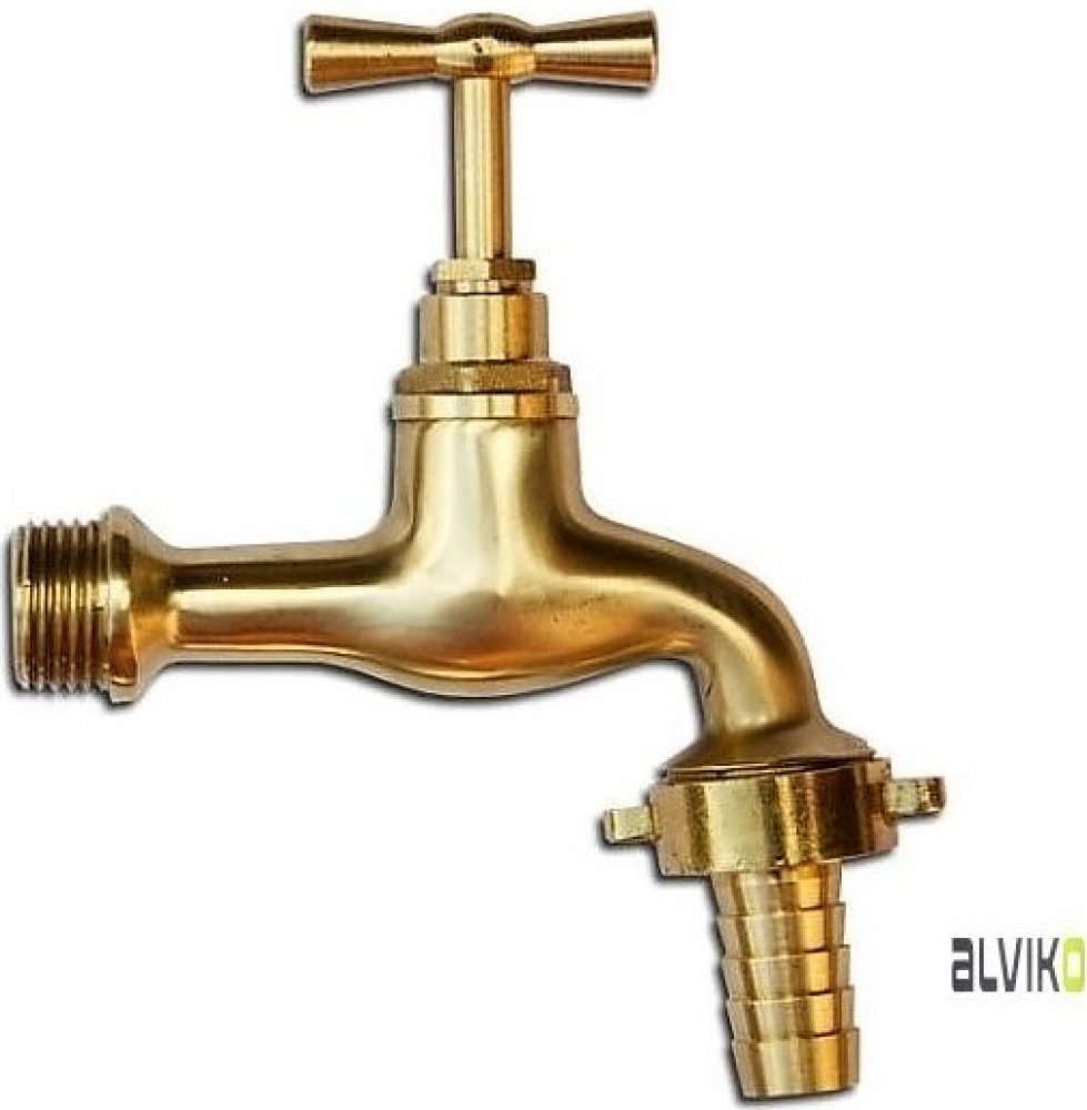 Mosazný zahradní ventil, 1/2" vnější závit, leštěná mosaz, připojení na hadici.