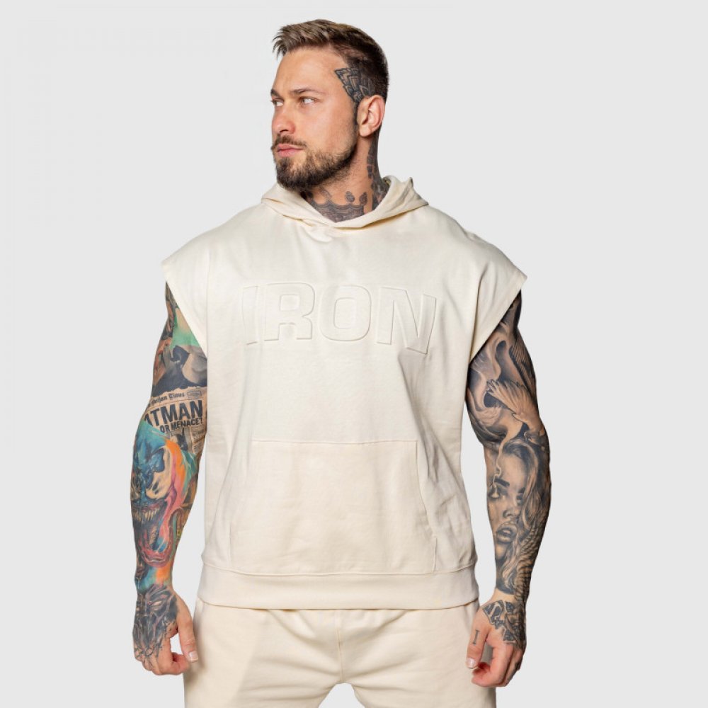 Tvůj cíl je jasný a nic tě nezastaví, dokud ho nedosáhneš. V každém tréninku vidíš výzvu překonat sama sebe. Pro tebe, který jdeš naplno, jsme navrhli pánskou vestu s kapucí Ambition v béžové barvě. Je to kousek, který podtrhne tvou formu a stane se symbolem tvého odhodlání. Vesta Ambition spojuje nadčasový design s maximální funkčností, ať už si v posilovně nebo mimo ni. Design bez rukávů nechá vyniknout tvrdě vydřené svaly na rukou a ramenou. Volný střih zároveň poskytuje nekompromisní volnost pohybu při jakémkoli cviku či aktivitě. Vyrobená ze 100% prémiové bavlny, vesta je neuvěřitelně pohodlná na dotek, příjemně hřejivá a zároveň prodyšná – ideální pro aktivní životní styl. Kvalitní materiál zaručuje, že vesta si zachová svůj tvar, barvu a odolnost i po mnoha vypráních a intenzivním používání. Je to kousek, na který se můžeš spolehnout. Prostorná kapuce tě ochrání před větrem nebo dodá ten správný street style look. Klokaní kapsa je klasika, do které schováš vše potřebné – telefon, klíče, peněženku nebo jen zahřeješ ruce. Zařaď se mezi elitu utvořenou kolem značky Iron Aesthetics a projev naplno svoji vášeň pro aktivní životní styl. Zkombinuj vestu Ambition s našimi tepláky nebo šortkami a vytvoř si outfit, který říká jasně: Jdeš si za svým!