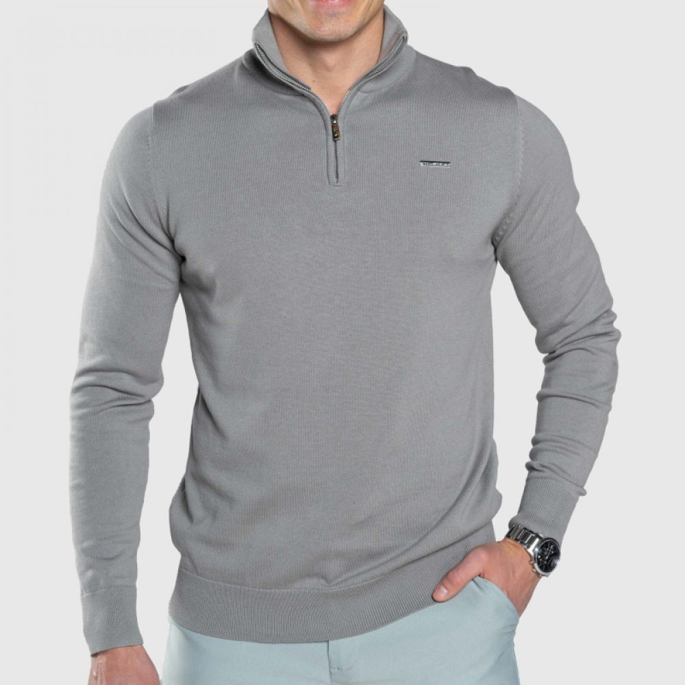 Šedý svetr se zipem Tomas představuje dokonalý stylový kousek, který by neměl chybět v žádném šatníku. Tento poutavý svetr v šedé barvě je vyroben z prémiové, na dotek mimořádně jemné tkaniny, která vám zaručí maximální pohodlí a stylový vzhled při jakékoli příležitosti. Díky praktickému půl zipu se svetr snadno obléká a svléká, zatímco žebrované lemy zajišťují dokonalé přizpůsobení postavě. Ať už...