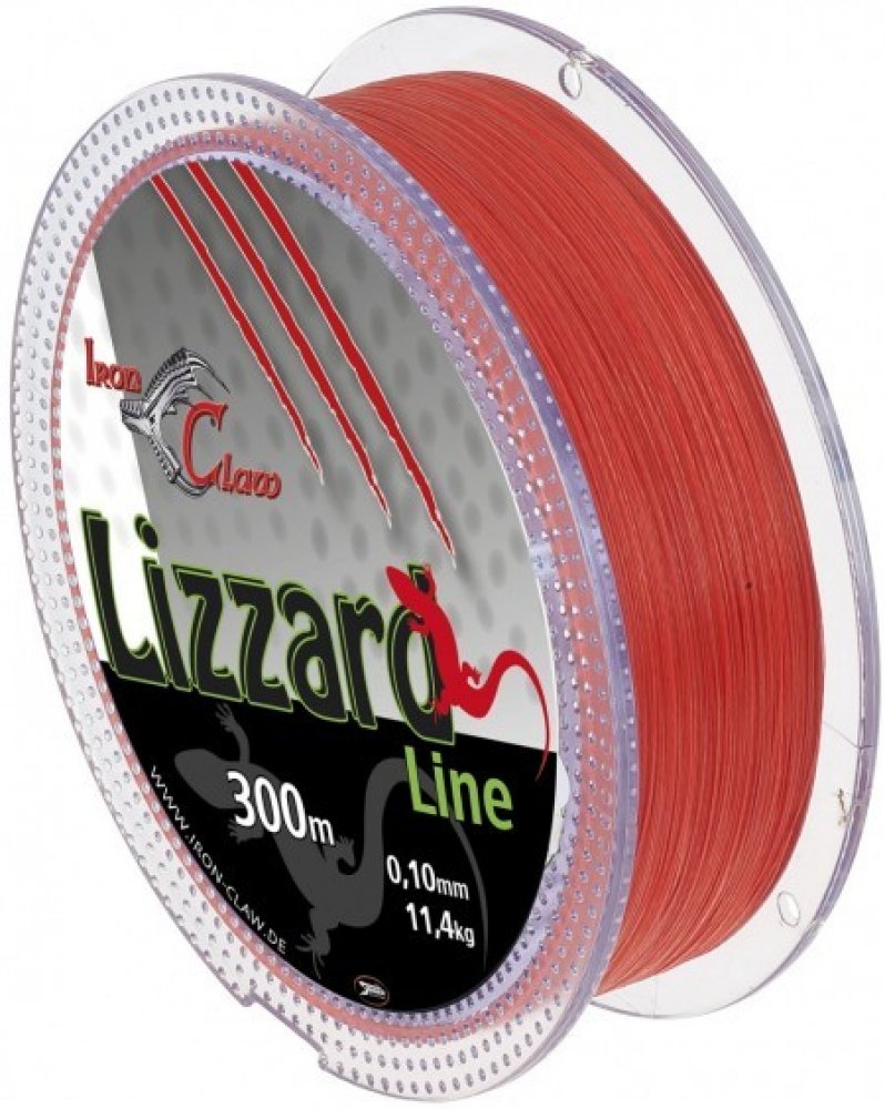 Iron Claw Lizzard šňůra se skládá ze tří pletených vláken. Povrch šňůry je opatřen velmi hladkým a otěru vzdorným povlakem. Tento povlak nám zaručí dlouhé hody a zároveň dlouhou životnost. Lizzard má mimo jiné velmi slušnou nosnost, ale skvělý je poměr cena – výkon. K dispozici ve dvou barevných provedeních. Za prvé – výborně viditelná oranžová nebo tlumeně šedá, jako kamufláž.