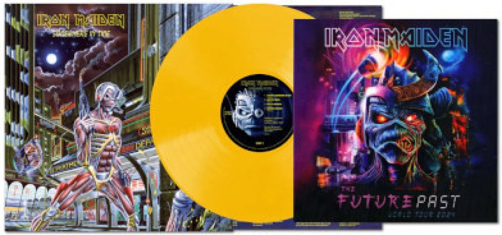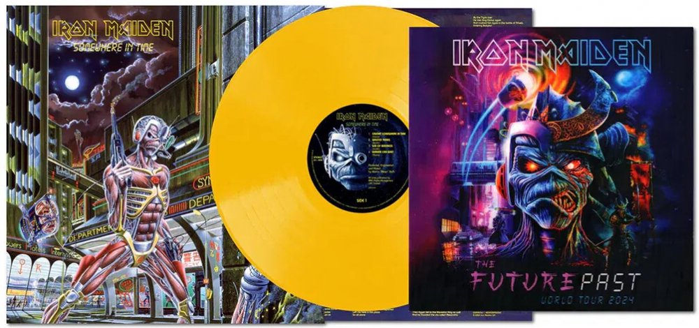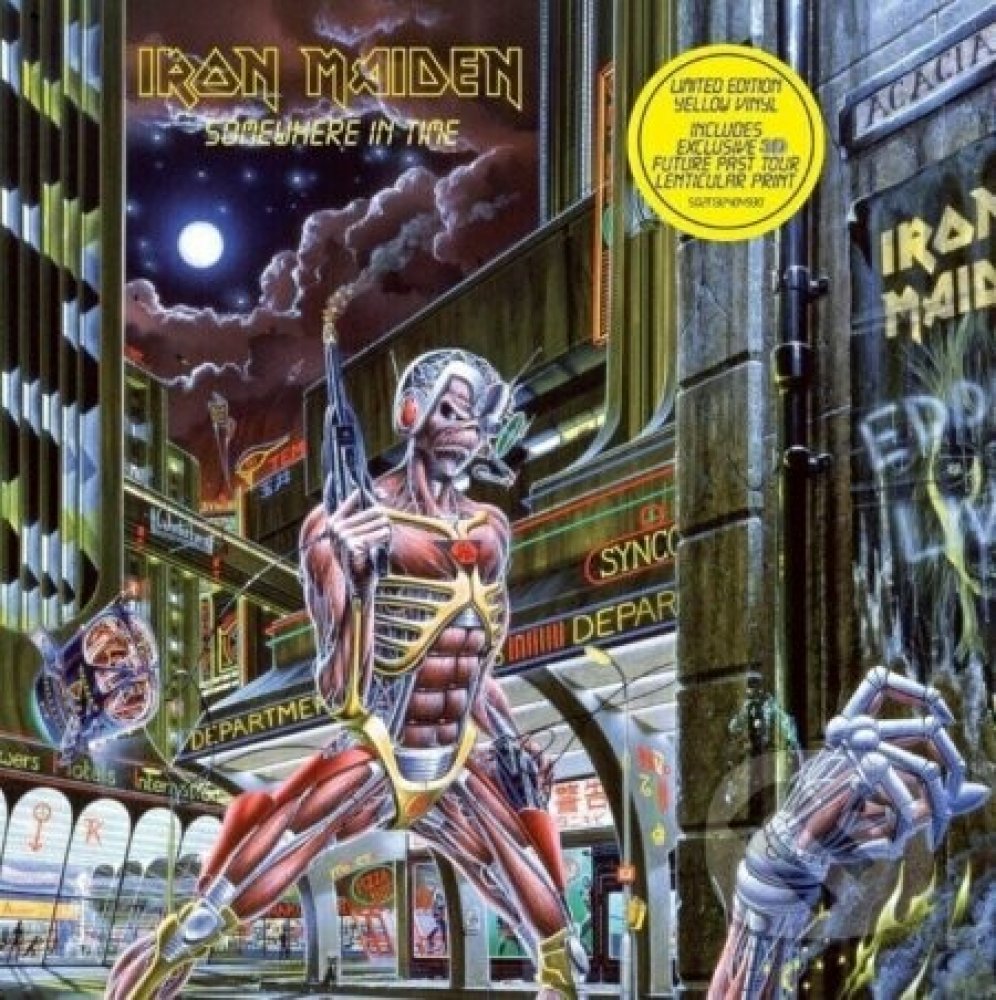Vinylová reedice šestého studiového alba Iron Maiden. Skupina desku Somewhere In Time vydala v září 1986. Jde o její první nahrávku s použitím kytarového syntezátoru, tedy technologie která kytaristovi umožňuje přístup k funkcím syntezátoru. Reedice je provedena ve žluté barvě.