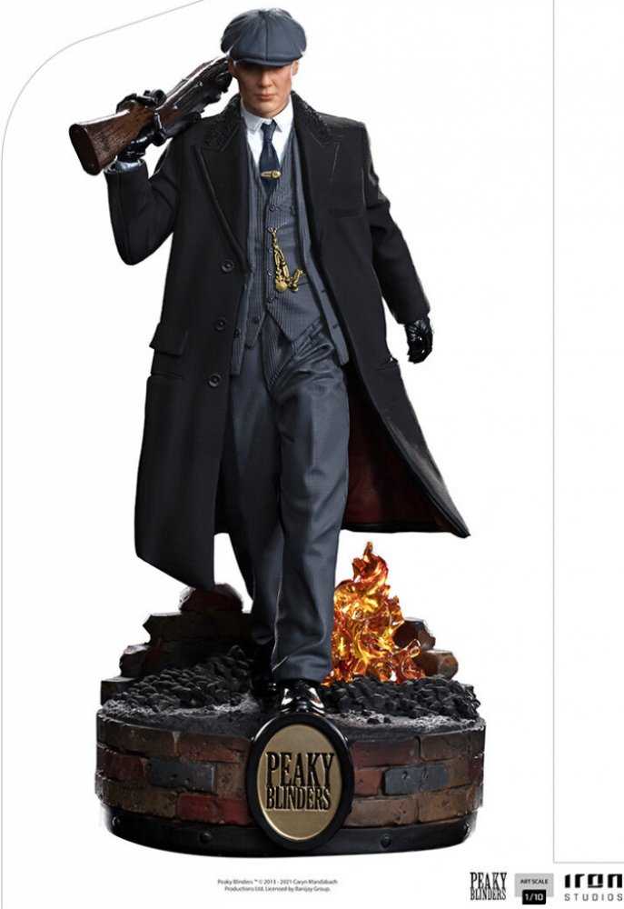 Postava vodcu gangsterov z mocnej zločineckej organizácie je elegantne oblečená v čiernom kabáte a sivom obleku. Kráča po rustikálnom podstavci, ktorý odkazuje na špinavé ulice britského mesta Birmingham v 20. rokoch 20. storočia, s podlahou plnou uhlia a plameňov, obklopených starými tehlami a s logom série na prednej strane. Samopal opretý na ramene, rukavice a charakteristická sivá novinárska č...