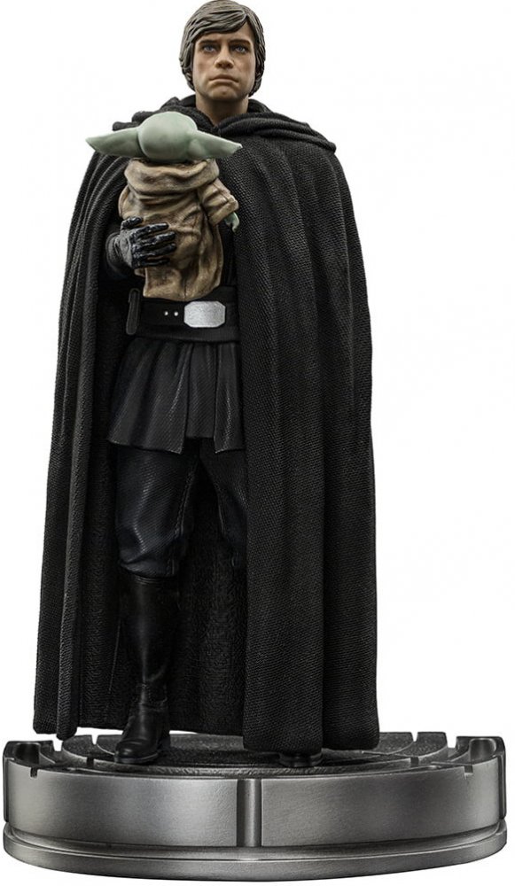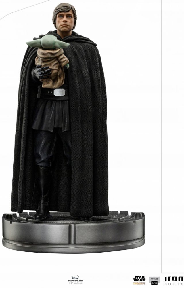 Mistr Jedi v plášti a černém oděvu, jenž na pravé ruce nese dítě citlivé na Sílu jménem Grogu, které pochází ze stejného druhu jako jeho starý mistr Yoda a stejně jako on má silné spojení s mocí Síly, s klidem a moudrostí rozjímá poté, co vyslyšel volání malé bytosti, která nyní musí jít cestou učedníka se svým novým opatrovníkem a mistrem. Jedna z nejzajímavějších scén posledního dílu 2. série seriálu "Mandalorian" ve streamovací službě Disney+, je právě nyní mistrovsky ztvárněna soškou "Luke Skywalker a Grogu - The Mandalorian - Art Scale 1/10" od Iron Studios.