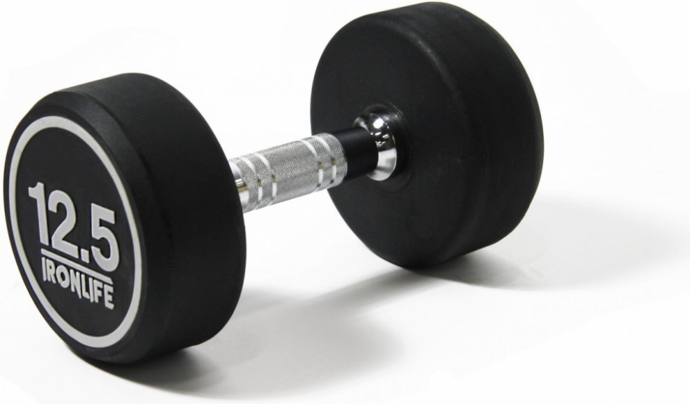 Kvalitní jednoruční činka o hmotnosti 12,5 kg značky IRONLIFE, která je vyráběna z masivní oceli a disponuje stylovým a velmi odolným povrchem z černé gumy bez zápachu. Při provádění samotných cviků o sebe činky "necinkají" a nevytváří tak nadměrný hluk. Tato činka je vhodná jak do domácího prostředí, tak do komerčních posiloven a fitness center.