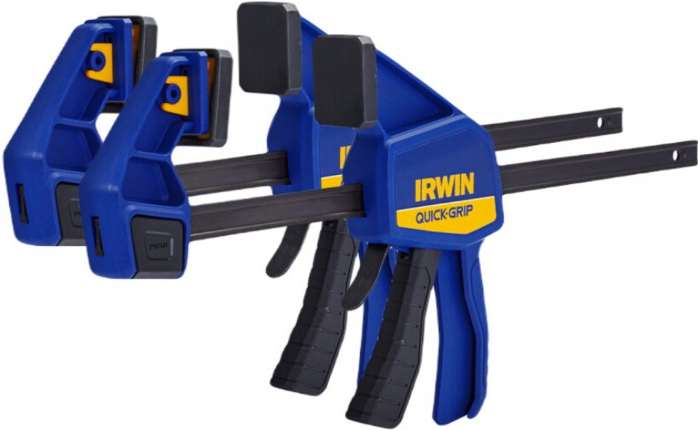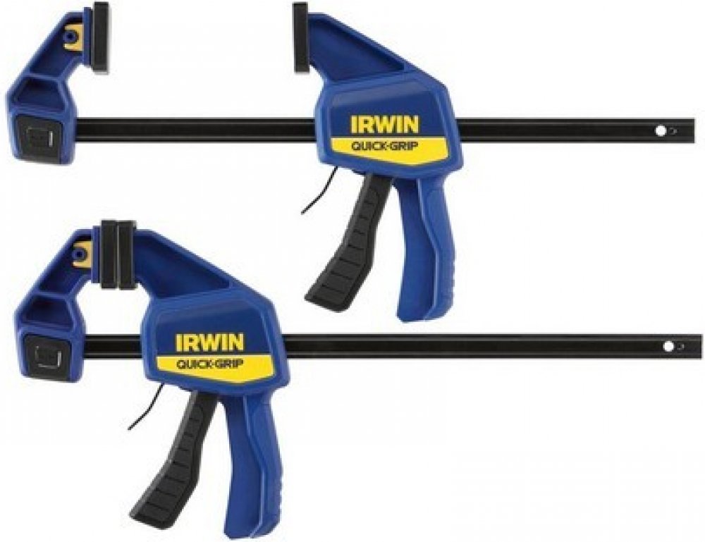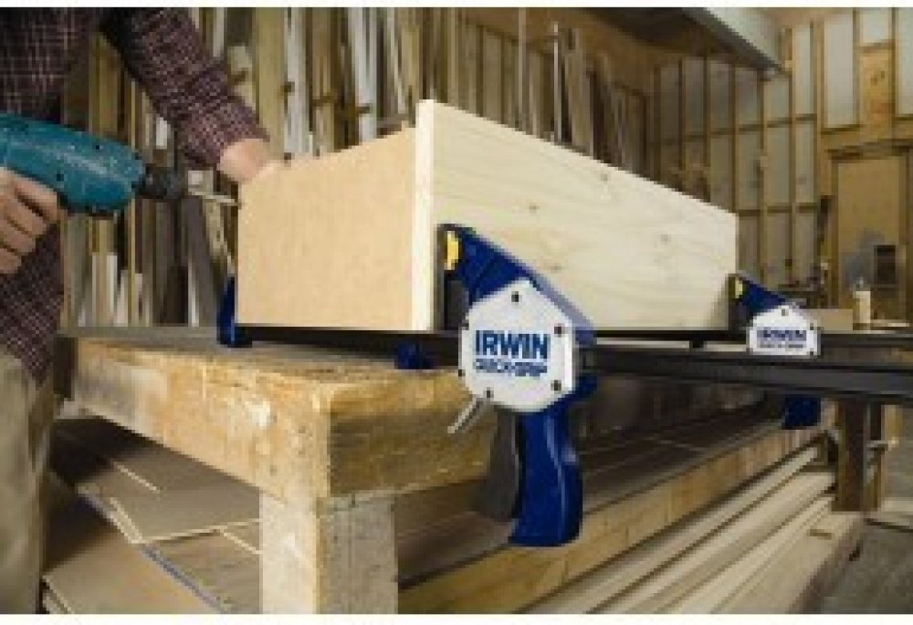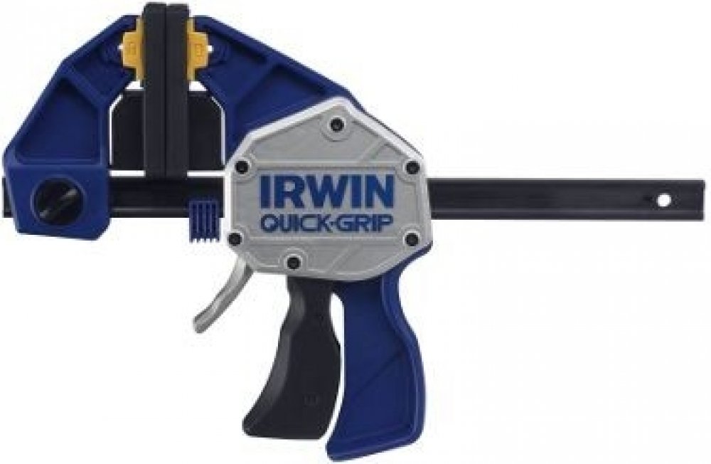 Jednoruční stolařská svěrka IRWIN® QUICK-GRIP® pro střední zatížení rovnoměrně rozloží až 136 kg trvalého upínacího tlaku.