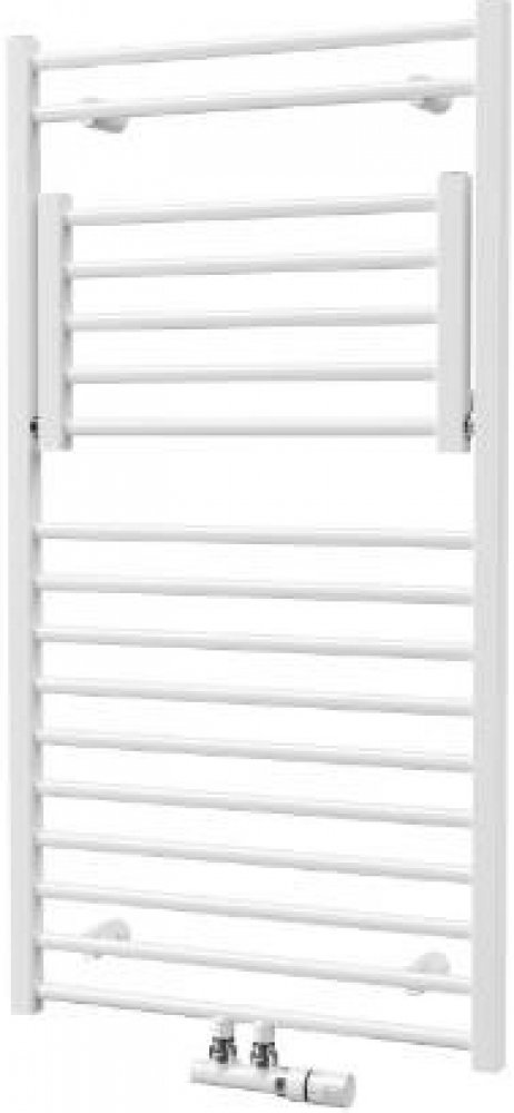 Klasický koupelnový žebřík s nezanedbatelnou nadhodnotou, výklopnými policemi na sušení, to je Flexi. Ve chvíli, kdy nepotřebujete využívat funkce sušení na sklopené polici, šetří prostor a slouží podobně jako běžný nástěnný radiátor.