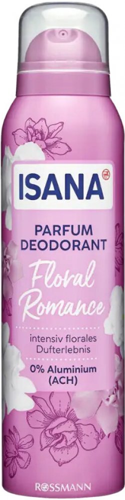 Deodorant ISANA Parfum Floral Romance hýčká smyslnou kompozicí vůní kosatce a jasmínu, doplněnou jemným nádechem vanilky - s účinnou a dlouhotrvající ochranou proti tělesnému pachu. Nezanechává bílé stopy. Bez hliníku (ACH).