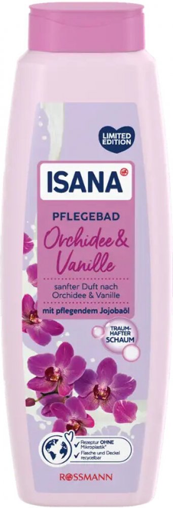 Dopřejte své pokožce rozmazlující péči s ISANA pečující pěnou do koupele ORCHIDEJ & VANILKA. Komplex Softpflege pomáhá udržovat přirozenou hydrataci pokožky, zatímco harmonická vůně jemné orchideje a aromatické vanilky promění každou koupel v smyslný zážitek. Krémová pěna jemně obklopí vaše tělo a zanechá pokožku hebkou a vláčnou.