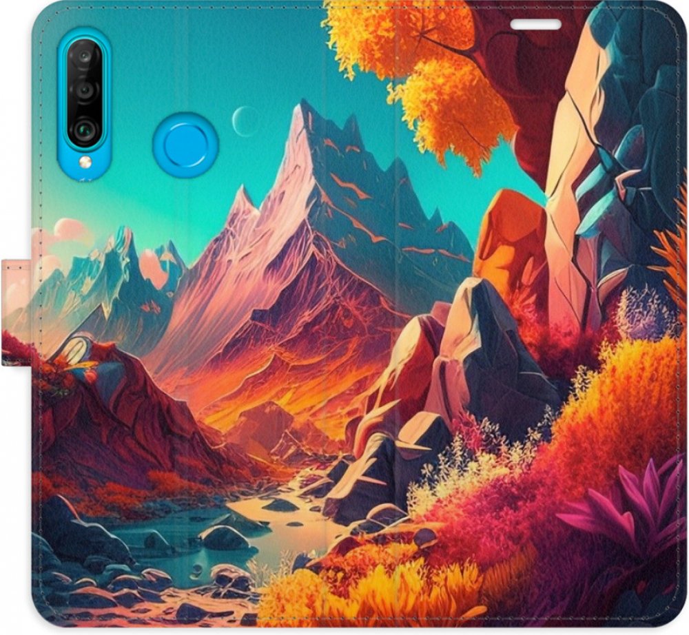 Knížkové flipové pouzdro, obal, kryt iSaprio pro mobil Huawei P30 Lite - Colorful Mountains - kapsičky na karty, ochrana celého telefonu, funkce stojánku, odolná TPU vanička, magnetické zavírání
