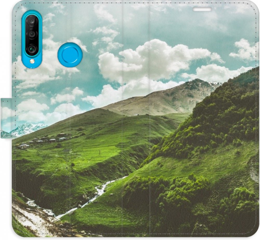 Knížkové flipové pouzdro, obal, kryt iSaprio pro mobil Huawei P30 Lite - Mountain Valley - kapsičky na karty, ochrana celého telefonu, funkce stojánku, odolná TPU vanička, magnetické zavírání