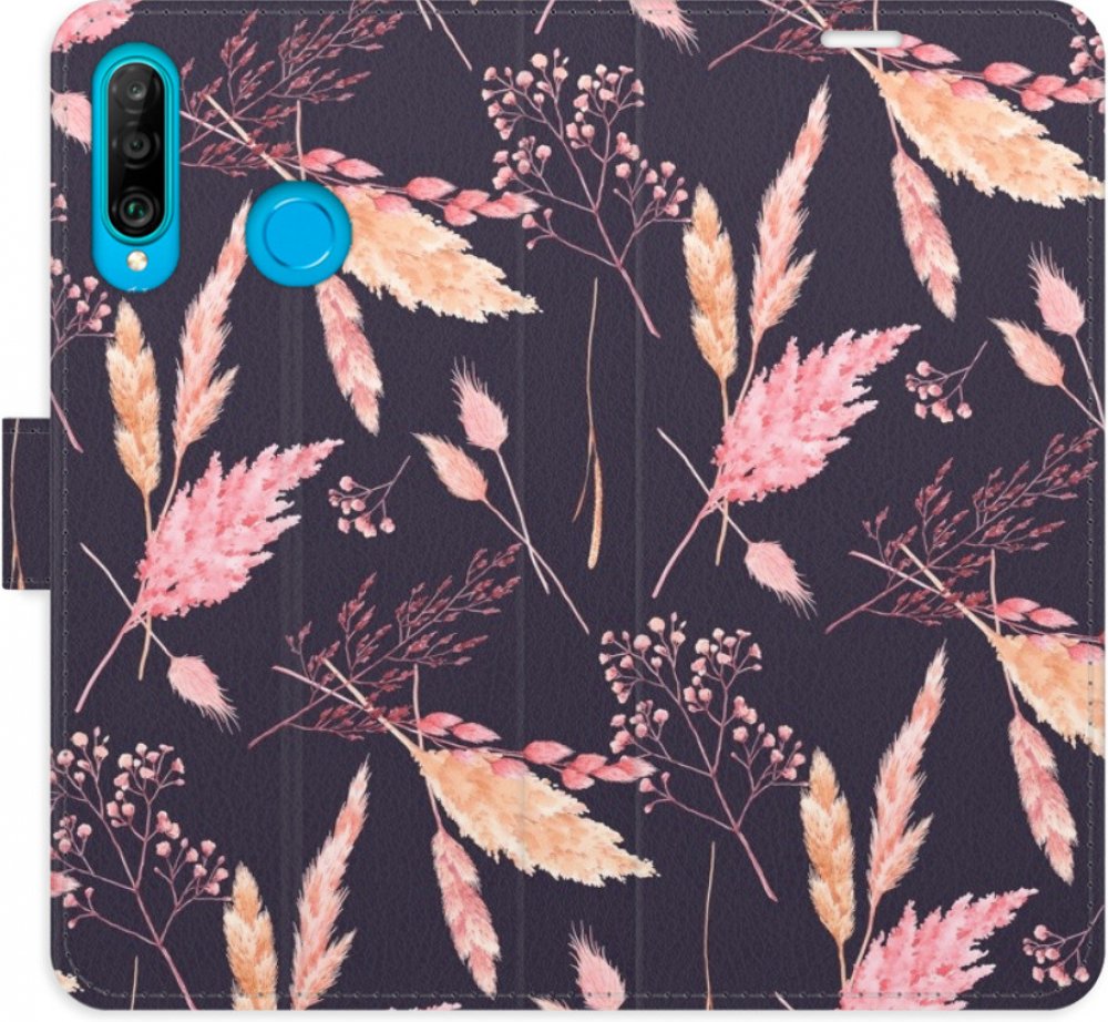 Knížkové flipové pouzdro, obal, kryt iSaprio pro mobil Huawei P30 Lite - Ornamental Flowers 02 - kapsičky na karty, ochrana celého telefonu, funkce stojánku, odolná TPU vanička, magnetické zavírání