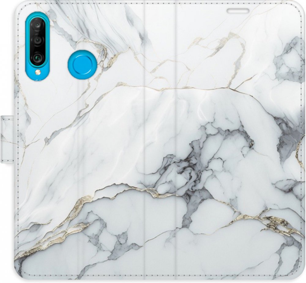 Knížkové flipové pouzdro, obal, kryt iSaprio pro mobil Huawei P30 Lite - SilverMarble 15 - kapsičky na karty, ochrana celého telefonu, funkce stojánku, odolná TPU vanička, magnetické zavírání