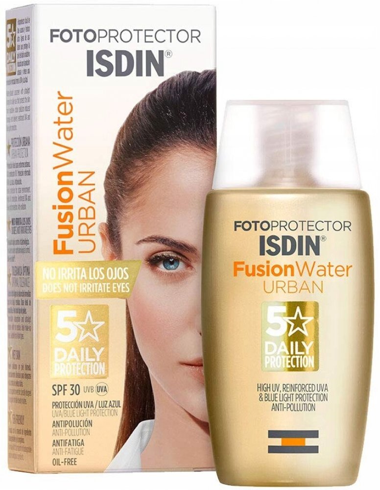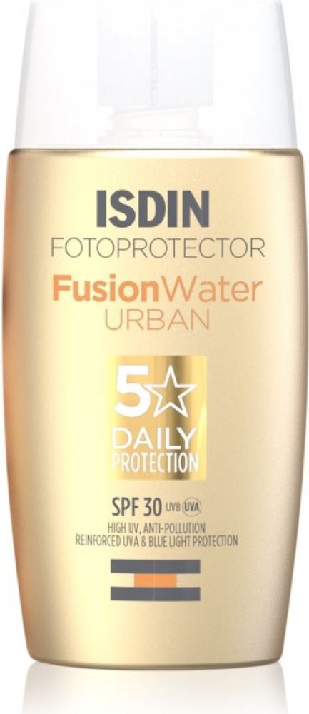 ISDIN Fusion Water, 50 ml, Ochrana proti slunečnímu záření pro ženy, Chraňte svou kůži před předčasným stárnutím i jiným poškozením způsobeným slunečním zářením. Opalovací přípravek ISDIN Fusion Water vystaví účinný obranný štít paprskům UV záření a pomůže vám tak předcházet nejen spálení, ale i vzniku pigmentových skvrn, snížení kožní pružnosti, úbytku kolagenu a dalším projevům stárnutí kůže. V neposlední řadě pak významně sníží riziko vzniku rakoviny kůže. Vlastnosti: poskytuje ochranu před UV zářením působí preventivně proti stárnutí pokožky hydratuje a vyživuje lehce se roztírá a nezanechává mastný film chrání pleť před škodlivými vnějšími vlivy přípravek je nekomedogenní chrání kůži před UVA i UVB zářením Složení: oxid titaničitý – poskytuje ochranu před UVA i UVB zářením dermatologicky testováno Jak používat: Aplikujte na kůži bezprostředně před pobytem na slunci. K udržení ochrany aplikaci opakujte, zejména při pocení, po koupání nebo osušení ručníkem. Nezůstávejte na slunci příliš dlouho, i když jste použili prostředky na ochranu proti slunečnímu záření. Nevystavujte malé děti přímému slunci.