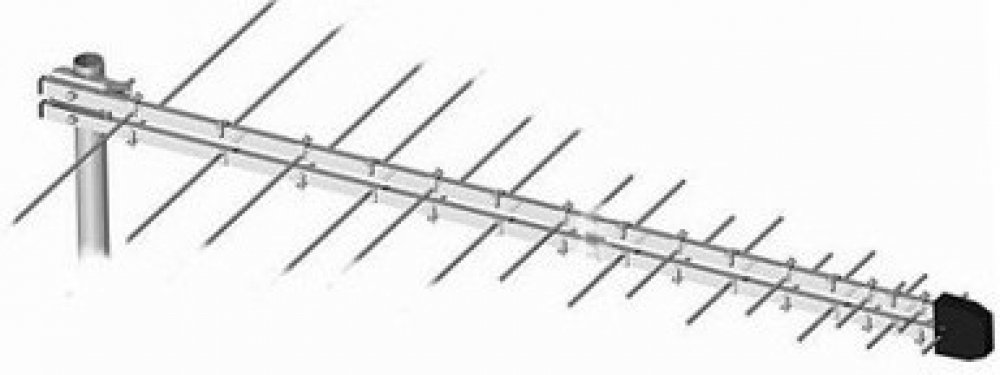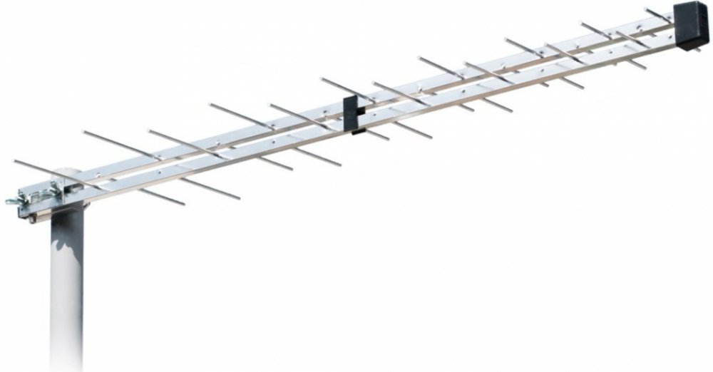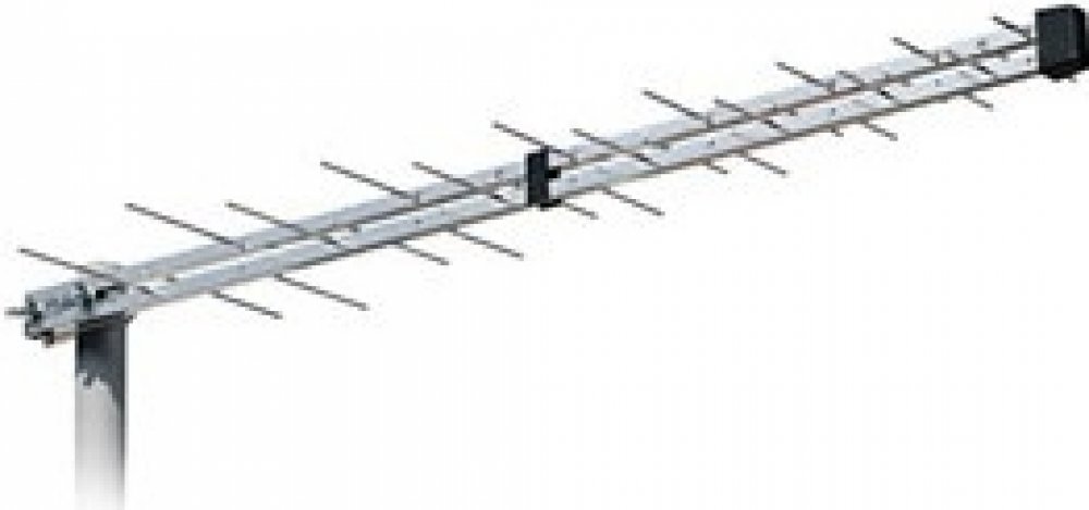 Logaritmická anténa UHF s otočným F konektorem pro připojení kabelu sloužící pro příjem DVB-T vysílání. Montáž pro H polarizaci.