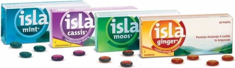 Pastilky s přírodním zázvorovým olejem a medem. Aktivní složka - extrakt z islandského lišejníku.