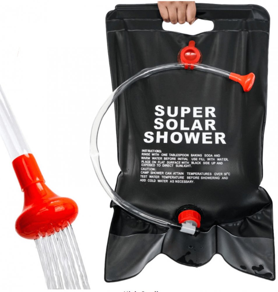 Sprcha je zhotovena z pevné umělé hmoty. Díky černému potahu dobře pohlcuje sluneční záření a na slunci se voda rychle zahřívá. Umělá hmota je nepromokavá a těsné zátky i ventil způsobují, že sprchu můžete bezpečně uložit například do brašny. Voda se ohřívá díky slunci.