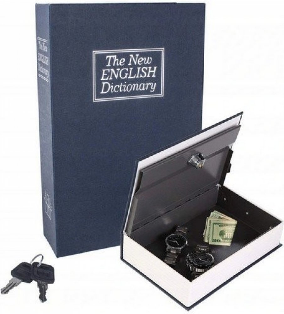 Trezor je skvěle schovaný v schránce realisticky vypadající jako kniha - slovník.