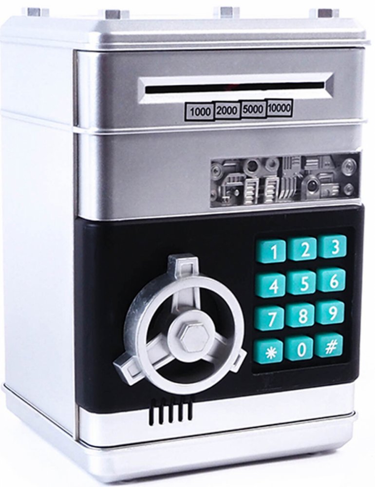 Tato dětská pokladnička sejf je velmi atraktivní alternativou k tradičnímu prasátku. Po zadání příslušného kódu do něj můžou Vaše děti umístit bankovky i mince, a v případě potřeby je odebrat. Je velmi dobrým nápadem jak děti naučit šetřit své vlastní peníze, a plánovat své výdaje. Pokladnička je zabezpečena speciálním čtyřmístným kódem. Když děti chtějí využít úspor, které nashromáždily, musí zad...