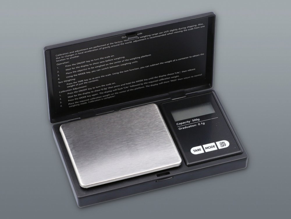 Kapesní profesionální digitální váha s váživostí do 500 g a přesností 0,1 g.