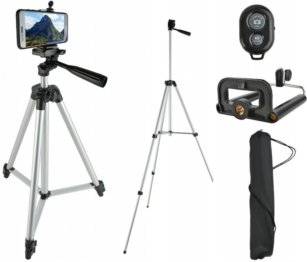 - Univerzální stativ se selfie úchytem a dálkovým bluetooth ovladačem. Vhodné pro všechny typu fotoaparátů a mobilních telefonů.