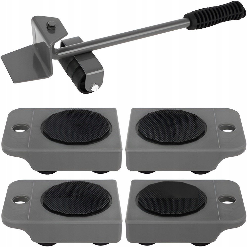 Sada 5 kusů na stěhování. Stěhování mohlo být do této doby obtížné a namáhavé. Díky stěhovací sadě už ne. Sada obsahuje 4 podložky s kolečky a zvedací tyč. Výborný pomocník, který maximálně usnadní stěhování jakéhokoliv kusu nábytku. Páku podsuneme pod roh nábytku a vsuneme podložku na kolečkách.
